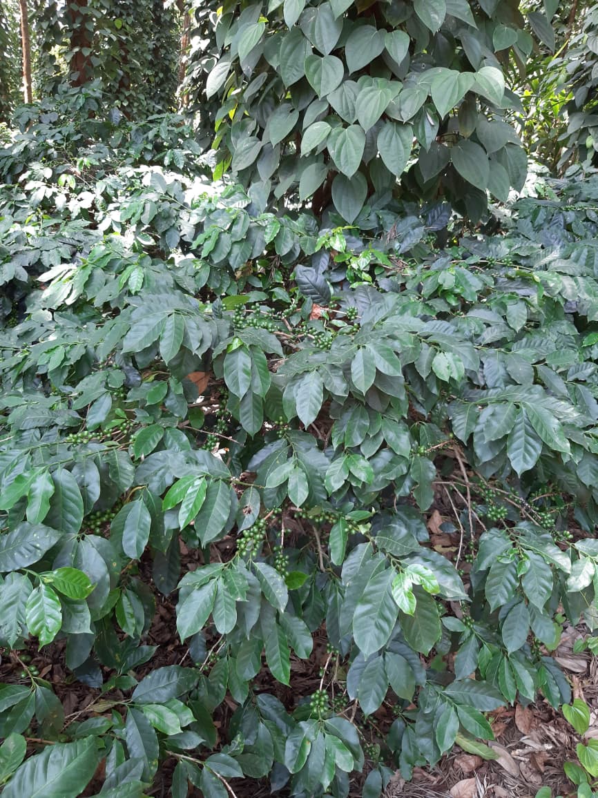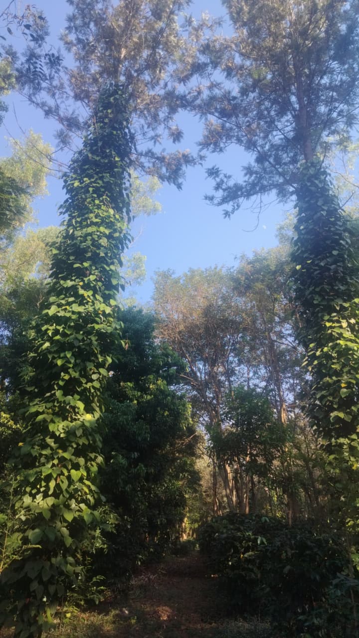 Our journey begins in rich, fertile soil where coffee and pepper plants grow under natural shade. The estate follows traditional farming practices that respect the land, climate, and biodiversity.